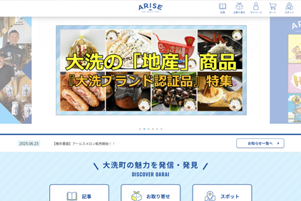 - 「ARISE GIFT」は、大洗町の特産品を中心とした通販サイトです。町と外の人をつなぐプラットフォームを目指して運営しています。