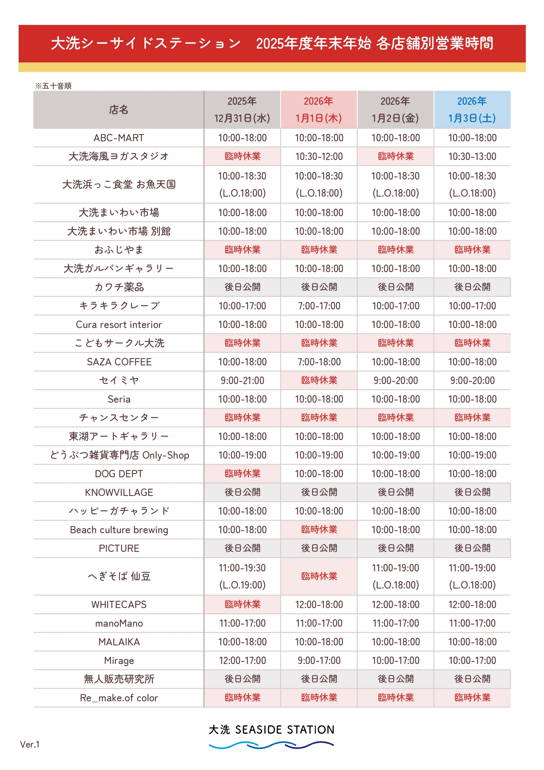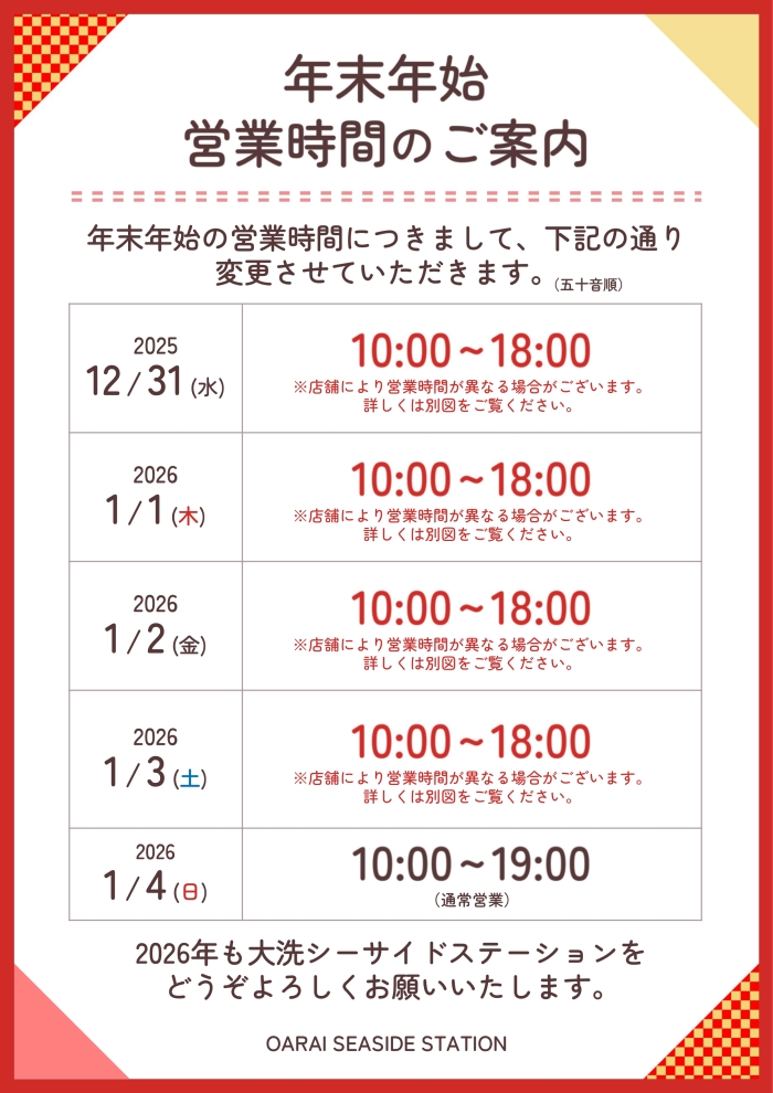 2026年も大洗シーサイドステーションをどうぞよろしくお願いいたします。