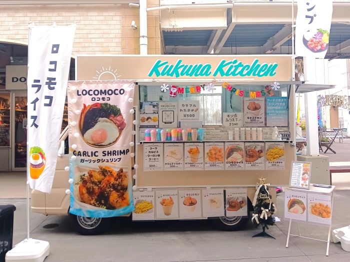 【メニュー】ロコモコライス、ガーリックシュリンプ、モチコチキン、フリフリポテト、トルネードウインナー、クラムチャウダー